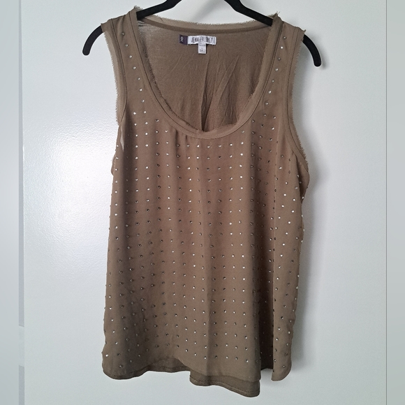 I love this top and I wish I still fit into it! It's really pretty on and can be dressed up or down. Jennifer Lopez. Size L. Olive or army green in color. Great condition with no flaws.