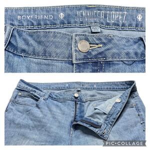 Jennifer Lopez Rhinestone and Faux Pearl Embellished Boyfriend Blue Jeans Sz 14