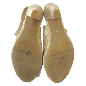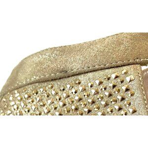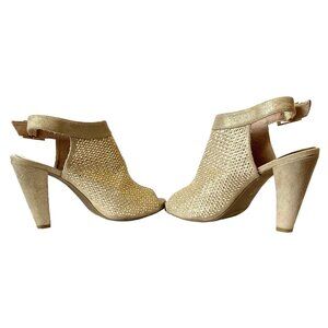 Jennifer Lopez Sasha Blingy Champagne Suede Slingback Gold Small Studs Peep Toe Heels Sz 9M