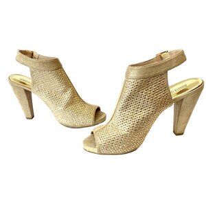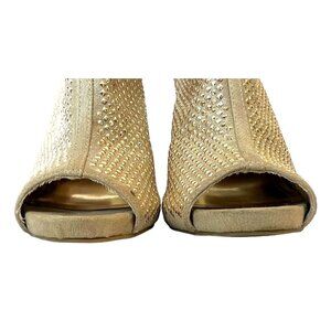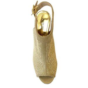 Jennifer Lopez Sasha Bling Champagne Suede Slingback Gold Stud Peep Toe Heels-9M