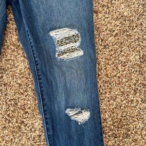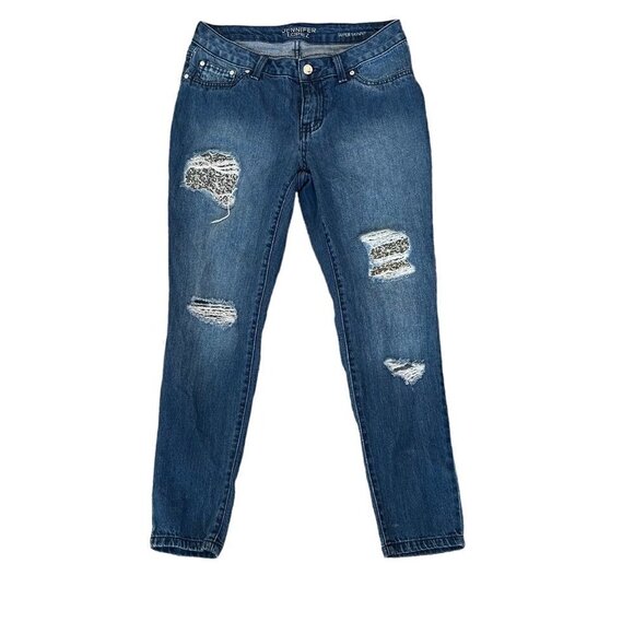 Jennifer Lopez Sequin Distressed Skinny Ankle Blue Jeans Women's Size 2