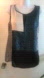 JLo dressy sequined tank top, scoop neckline with black sheer mesh panel, sleeveless, back button closure with peep hole, sheer panel on back top only, black, silver, cream and teal colors, fully lined, in excellent condition, no flaws.