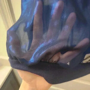 Jennifer Lopez Sheer Metallic Blue Blouse Short Sleeve Crop Top Size M NWT #I260