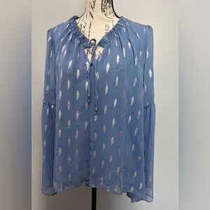 π Jennifer Lopez Shirred Chiffon Peasant Top β Blue & Silver, Size S (NWT)π
