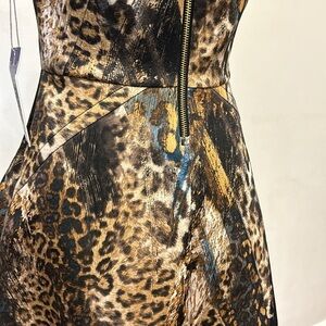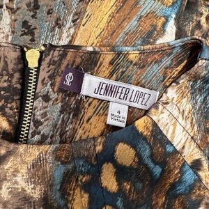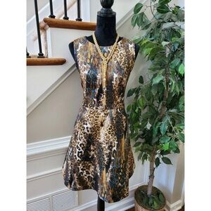 Jennifer Lopez Sleeveless Fit and Flare Knee Length Scuba Cocktail Dress Leopard Print Back Zip