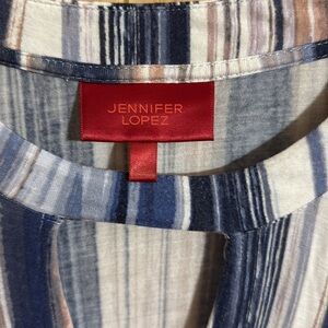 Elevate your style with this Jennifer Lopez chic striped top. Featuring a blend of blue and white hues, this top is perfect for any occasion. The elegant design adds a touch of sophistication to your wardrobe.