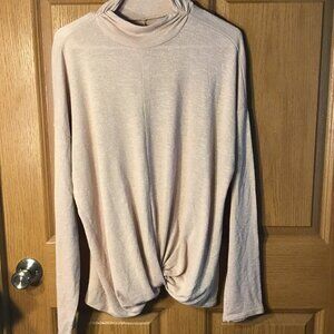 Jennifer Lopez XXL sweater, like pink glitter, long sleeve, turtleneck collar, front bottom is knotted in center, very dressy, 56% Rayon,