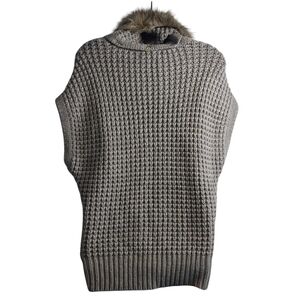 Jennifer Lopez Sweater Gray Chunky Sleeveless Removable Faux Fur Collar…