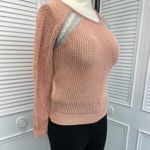 Jennifer Lopez Sz. M Sweater peach-pink metallic Silver Tread Knit Lightweight