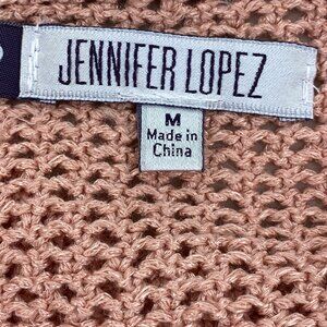 Jennifer Lopez Sz. M Sweater peach-pink with metalic Silver Tread Knit Lightweight. All season-wear alone or layer up. great feminine sweater. Shown on mannequine 39" bust, 29"waist. I cleanw ith Dryel home dry cleaning at home, buy on Amazon, save money.