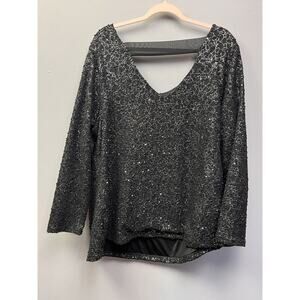 Jennifer Lopez Top Womens Plus size 3X Shimmer Silver Black Holiday Evening Top