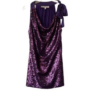 Jennifer Lopez Top sz XS Purple Sequins Sleeveless Draped Neck Side Tie VCG