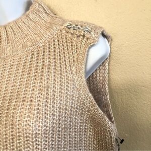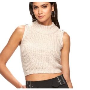 Jennifer Lopez Urban Allure Mock Neck Chain Detail Sleeveless Crop Knit Sweater Vest