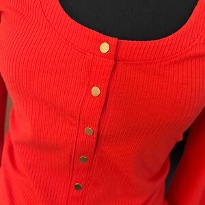 Jennifer Lopez Vibrant Red Button-Down Shirt ( orangey red)