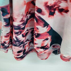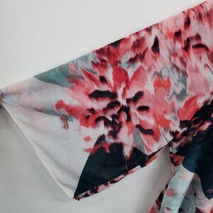 Jennifer Lopez Women 2X Pink Floral Sheer Overlay Blouse V-Neck Asymmetrical Top