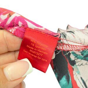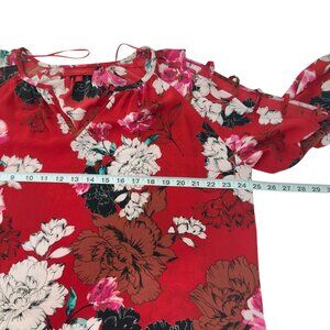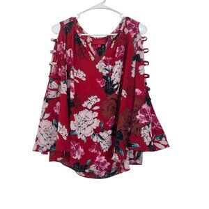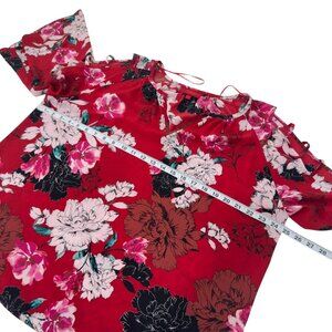 Jennifer Lopez Women SZ XL Red Floral Cold Shoulder Top Blouse V neck