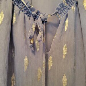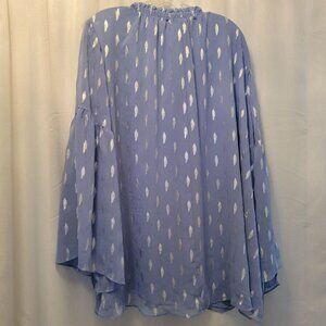 Jennifer Lopez Womens 3X Boho Tunic Blue Metallic Feather Bell Sleeve Flowy