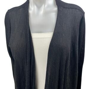 Jennifer Lopez Women's Black Metallic Open Front Long Sleeve Cardigan Sweater M
