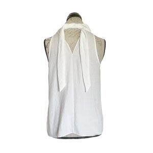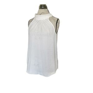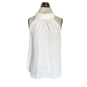 Jennifer Lopez Womens Halter Top White Size Small Sleeveless Pin Tuck High Neck Retro Career chic Preppy