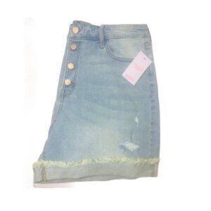 Jennifer Lopez Womens High Rise Light Wash Button Fly Jean Shorts Sz 12 New