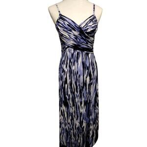 Jennifer Lopez Womens Maxi Dress S Blue Abstract Print Surplice V-Neck Sleeveles