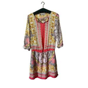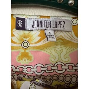 Jennifer Lopez Women’s Silky Multicolored Print Scarf Drawstring Waist Dress Siz