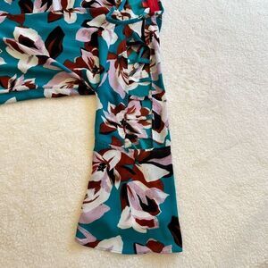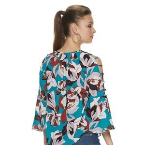 Jennifer Lopez Women's Turquoise Floral Bar Bell Sleeve Peasant Top Sz M