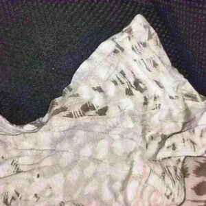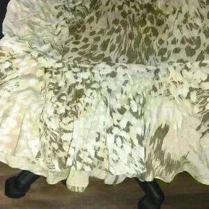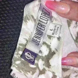 super cute sexy stylish Jennifer Lopez blouse. women's blouse size large. made in China. super soft stretchy material. Cap sleeves. gathers at the front with a roast bottom. sexy zipper up the back. perfect condition smoke-free pet free. no stains no rips no tears. cream and white in color. dark brown and silver zipper