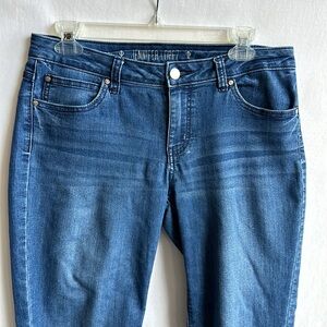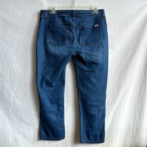 Jennifer Lopez blue denim capris, size 8. Good preowned condition. Cotton-polyester-spandex blend.