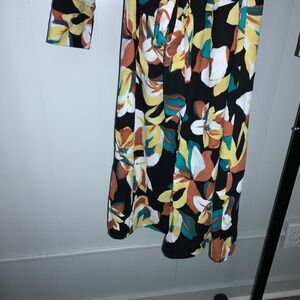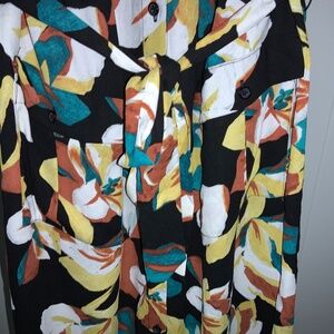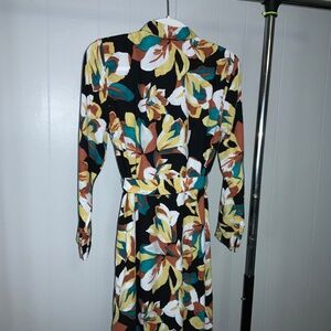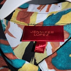 Jennifer Lopez botanical midi shirtdress sz M front button pocket tie sash