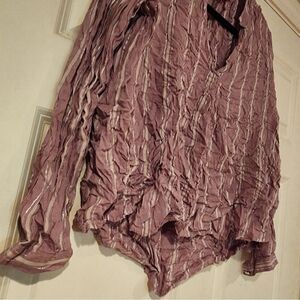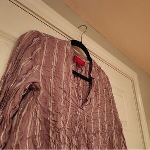 Jennifer Lopez pink and silver striped long sleeve blouse M