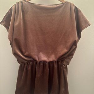 Jennifer Lopez shimmering copper fancy gathered top. Size small. Smoke free home. Worn 2 times. So soft and luxurious. Small rub- type mark on back of shirt as shown in photo.