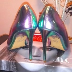 PRE-OWNED Jennifer Lopez pumps size 10M color metallic changes from purple to green depending on the angle...very great condition never worn outside.
