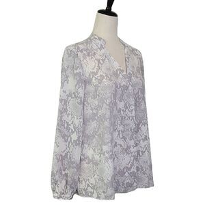 Jennifer Lopez Gray Snakeskin Print Notched V-neck Long Sleeve Blouse Size M