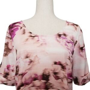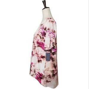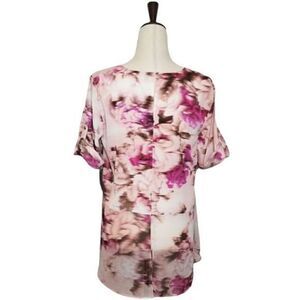 Jennifer Lopez Pink Floral Patterned Roll Tab Sleeve High/Low Blouse Size M