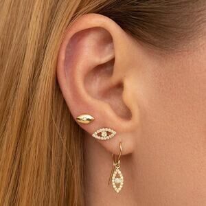 Crafted in 18K gold and accented with a diamond "iris", this stud will add some sparkle and protection to your every day.