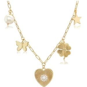 Pearl, Butterfly, CZ Clover, Heart, & Star Charm Chain Necklace