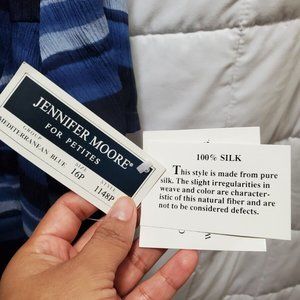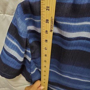 Jennifer Moore 100% Silk Shirt Woman Size 16 Petite Blue stripes button boho