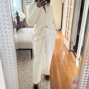 Jennifer Moore cream linen pleated front pant size 10 (please note these a small mark can be easily cleaned)
