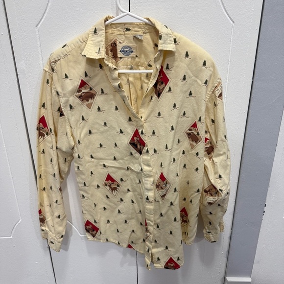 Jennifer Moore Adventure Vintage Yellow Outdoors Long Sleeve Button Down Shirt