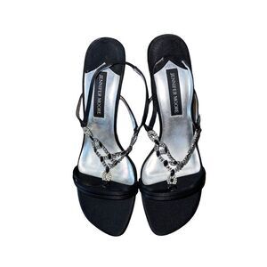 Jennifer Moore Onyx Black - Black Slingback - Jeweled Open Toe Heels Wmns Sz 10