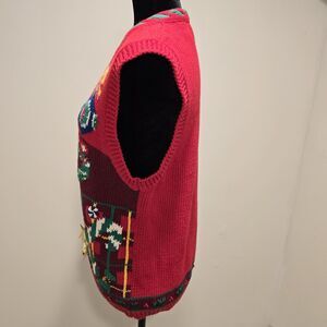 Jennifer Moore Petites Ugly Christmas Sweater Vest Women's Medium Red Hand Knit