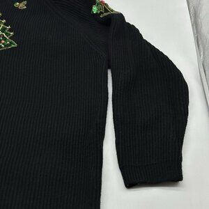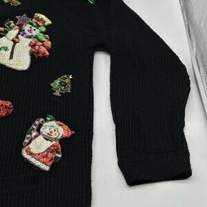 Jennifer Moore Size Medium Vintage Christmas Sequin Bead Black Cardigan Sweater