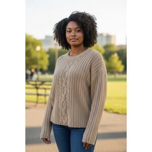 Cozy up in this Jennifer Moore soft knit V-neck sweater! This sweater is in excellent condition and ready to become a staple in your wardrobe. The neutral tan color makes it versatile for pairing with jeans, leggings, or skirts.