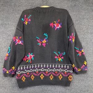 Jennifer Reed Women's Pullover Knit Sweater Gray M 3D Knit Accents Floral