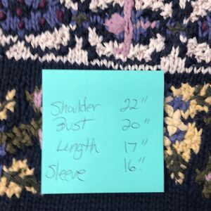 Jennifer Reed hand knitted navy & floral boxy sweater size small petite