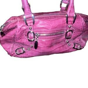 Jennifer Scott Fuchsia Leather Crocodile Print Handbag