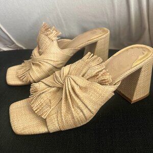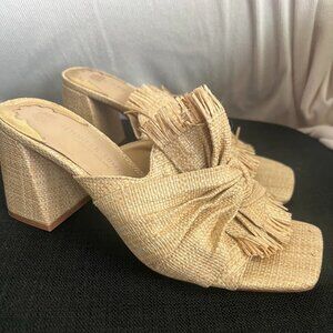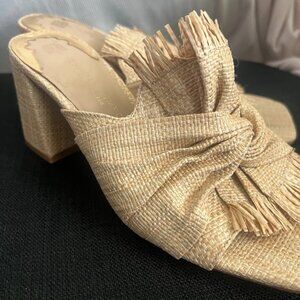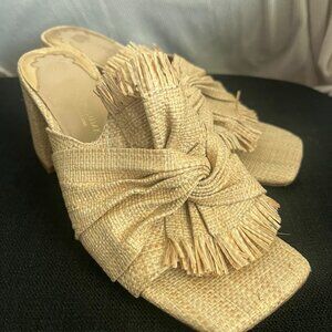 Jennifer Sumko Antonio Melani Beige Tan Square Open Toe Sandals Heels Size 9.5M