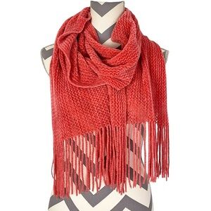 Jennifer Sun Chenille Scarf 12 x 80 Rectangle Coral Peach Soft Fuzzy Fringe