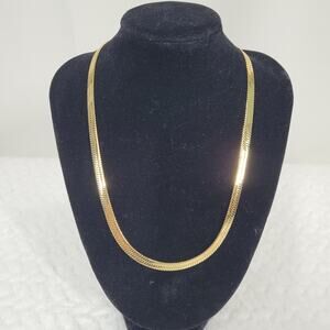 Etched herringbone pattern, lies flat at your collarbone with adjustable clasp.